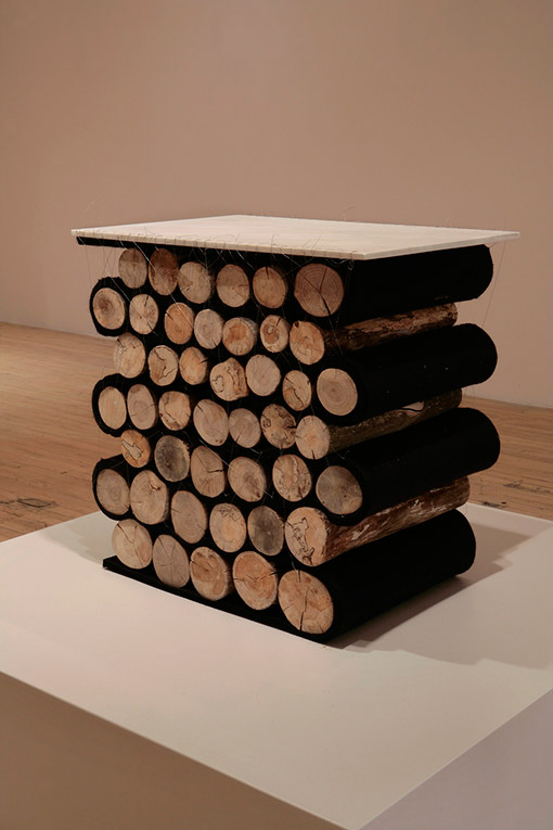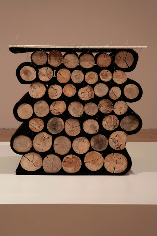 « Dans une violence sans équivoque d’un affrontement entre les matériaux dont les oeuvres sont issues se dissimulent des rencontres, fortuites ou non, qui font réagir les matériaux les uns par rapport aux autres pour découvrir des affinités ou des antipathies. La tumultueuse prolifération des matériaux tisse des liens nouveaux entre les éléments libérés d’un carcan pour projeter des contradictions physiques, des glissements logiques, des coalitions symboliques et des superpositions surprenantes créant des incertitudes entre un regard rationnel ou émotif. »